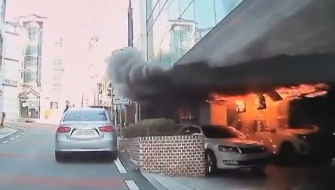 지난 3월29일 오전 10시9분께 이 건물 1층 주차장에서 불이 났다.
