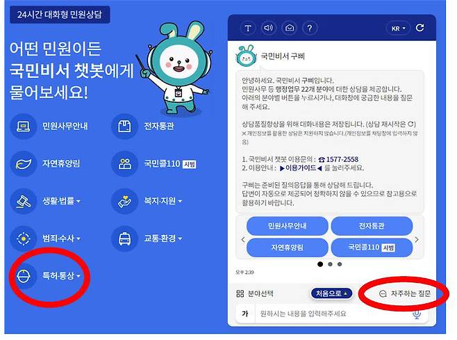 국민비서 '구삐'의 채팅로봇(챗봇)을 통해 지식재산권에 대해 24시간 365일 상담받을 수 있게 됐다.