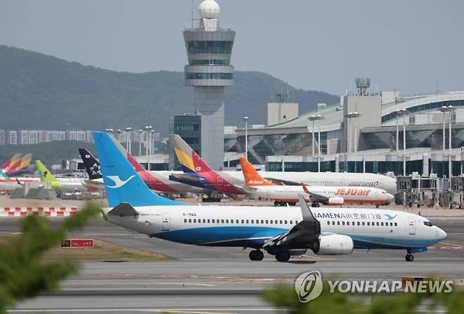 (영종도=연합뉴스) 임헌정 기자 = 아시아나항공 및 저비용항공사(LCC)의 올해 1분기 실적 발표가 예정된 16일 영종도 인천국제공항에 아시아나항공과 LCC 항공사 여객기들이 보이고 있다. 2022.5.16