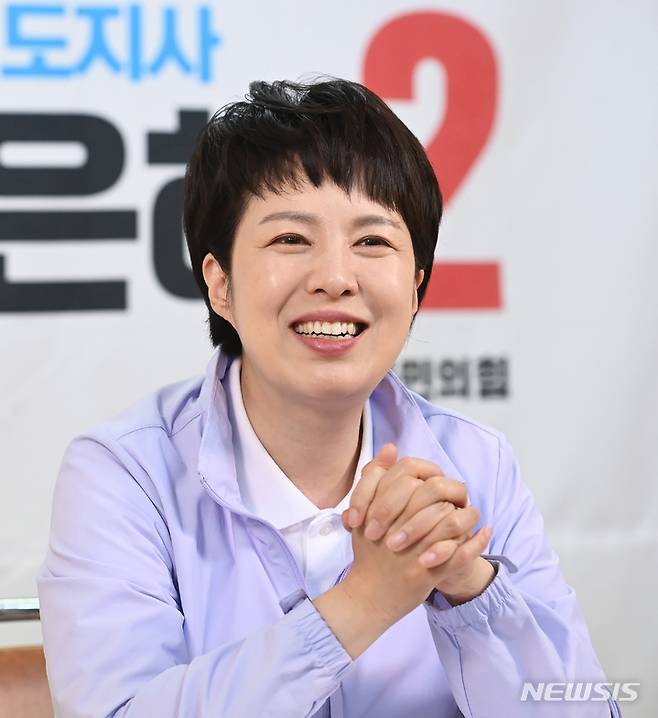 [수원=뉴시스] 김종택기자 = 김은혜 국민의힘 경기도지사 후보가 경기도 수원시 국민의힘 경기도당 선거 캠프에서 뉴시스와 인터뷰를 하고 있다. 2022.05.16. jtk@newsis.com