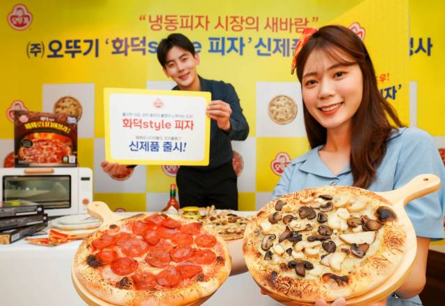 16일 서울 성동구 마리오네에서 열린 오뚜기 ‘화덕style 피자’ 출시 기념행사에서 모델들이 신제품과 함께 포즈를 취하고 있다. 이번에 새롭게 선보인 ‘화덕style 피자’는 페페로니디아볼라 피자와 트러플풍기 피자 등 2종으로 직화 오븐에 구워 도우의 쫄깃한 식감과 화덕 특유의 불향과 깊은 풍미를 즐길 수 있다./사진제공=오뚜기