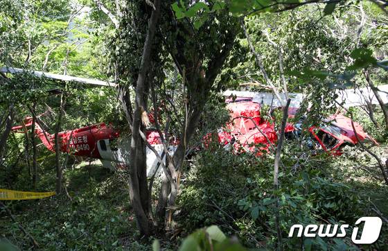 경남 거제 헬기사고 잔해