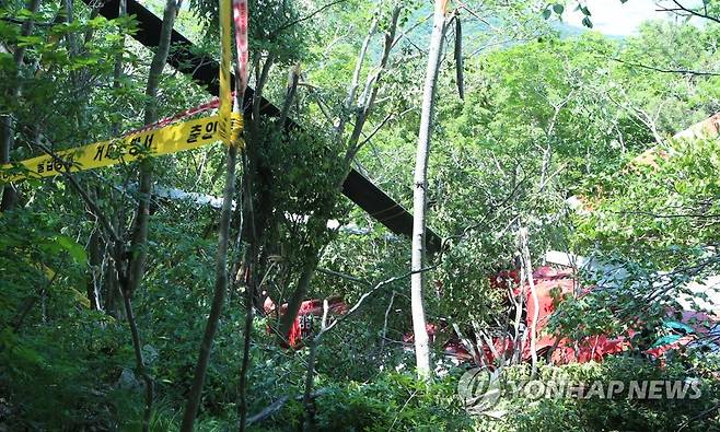 (거제=연합뉴스) 한지은 기자 = 16일 오전 8시 40분께 경남 거제시 거제면 선자산 정상 부근에서 헬기가 추락했다. 이 사고로 60대 기장 1명이 숨지고 부기장과 정비사 등 2명이 중상을 입었다. 2022.5.16