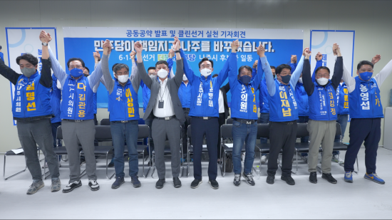 [아시아경제 호남취재본부 김육봉 기자] 윤병태 더불어민주당 나주시장 후보를 비롯한 나주시 후보 20명은 16일 오전 윤병태 시장 후보 사무실에서 기자회견을 갖고 민주당의 유능한 후보들아 책임지고 나주를 바꿀 기회를 달라고 시민들께 호소했다.