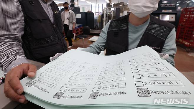 [수원=뉴시스] 김종택기자 = 16일 오후 경기도 수원시의 한 출력인쇄업체에서 제8회 전국동시지방선거 비례대표 경기도의회의원 투표용지가 인쇄되고 있다. 2022.05.16. jtk@newsis.com