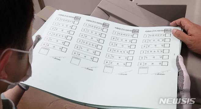 [수원=뉴시스] 김종택기자 = 16일 오후 경기도 수원시의 한 출력인쇄업체에서 제8회 전국동시지방선거 비례대표 경기도의회의원 투표용지가 인쇄되고 있다. 2022.05.16. jtk@newsis.com