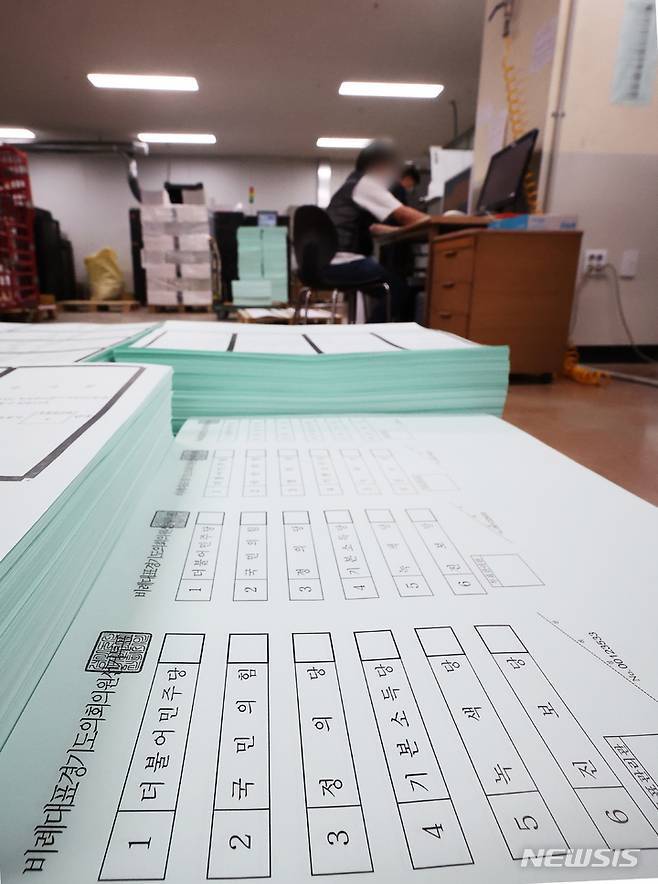 [수원=뉴시스] 김종택기자 = 16일 오후 경기도 수원시의 한 출력인쇄업체에서 제8회 전국동시지방선거 비례대표 경기도의회의원 투표용지가 인쇄되고 있다. 2022.05.16. jtk@newsis.com