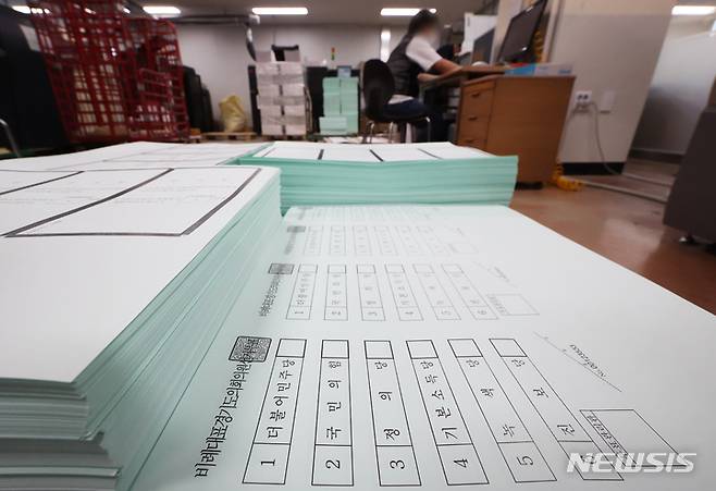[수원=뉴시스] 김종택기자 = 16일 오후 경기도 수원시의 한 출력인쇄업체에서 제8회 전국동시지방선거 비례대표 경기도의회의원 투표용지가 인쇄되고 있다. 2022.05.16. jtk@newsis.com