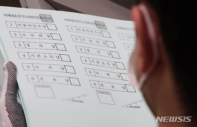 [수원=뉴시스] 김종택기자 = 16일 오후 경기도 수원시의 한 출력인쇄업체에서 제8회 전국동시지방선거 비례대표 경기도의회의원 투표용지가 인쇄되고 있다. 2022.05.16. jtk@newsis.com