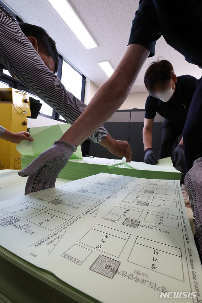 [수원=뉴시스] 김종택기자 = 16일 오후 경기도 수원시의 한 출력인쇄업체에서 6·1 경기도교육감선거 투표용지가 인쇄되고 있다. 2022.05.16. jtk@newsis.com
