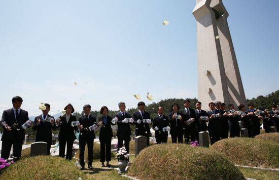 참석자들은 5월 영령들의 명복을 빌며 함평군이 직접 키운 518마리 흰나비를 국립5·18민주묘지 상공으로 날려 보냈다.