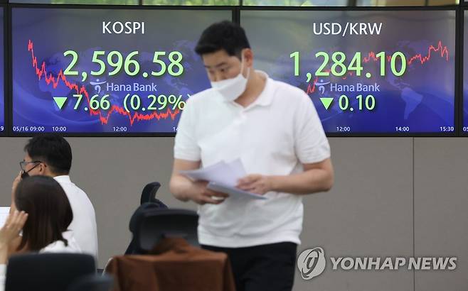 이날 코스피는 전 거래일보다 7.66포인트(0.29%) 내린 2,596.58에 장을 마쳐 2거래일 만에 다시 2,600선을 하회했다. 2022.5.16
