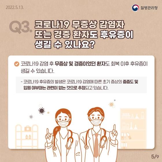 Q3. 코로나19 무증상 감염자 또는 경증 환자도 후유증이 생길 수 있나요?