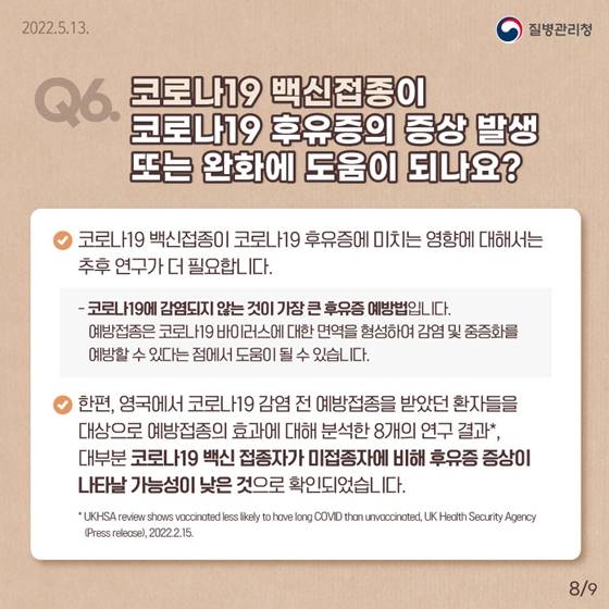 Q6. 코로나19 백신 접종이 코로나19 후유증의 증상 발생 또는 완화에 도움이 되나요?
