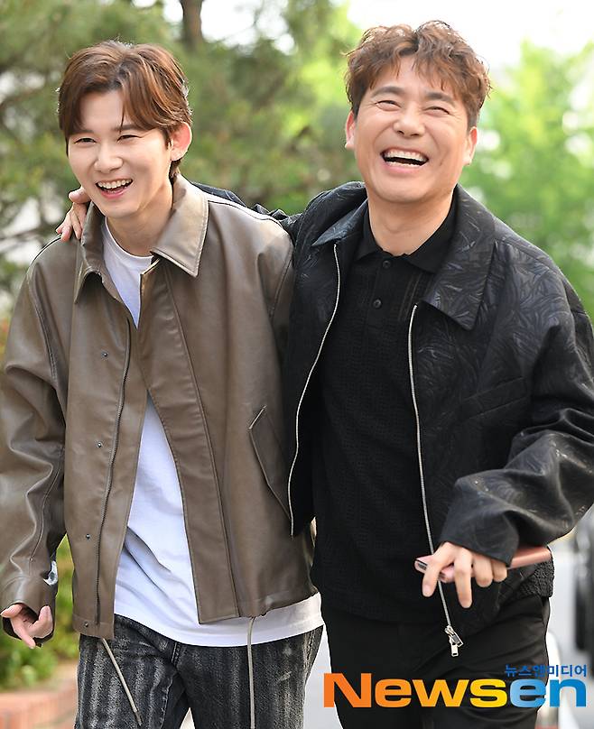 가수 승국이(왼쪽), 임창정이 5월 16일 오후 방송 녹화 일정 차 서울 영등포구 여의도동 KBS 신관으로 들어서고 있다.