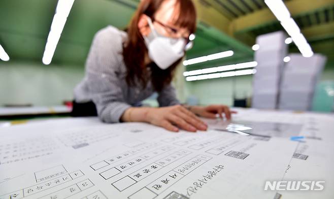 [대구=뉴시스] 이무열 기자 = 16일 오후 대구 달서구의 한 인쇄소에서 대구시선거관리위원회 관계자가 6·1 대구광역시장선거 투표용지를 검수하고 있다. 2022.05.16. lmy@newsis.com