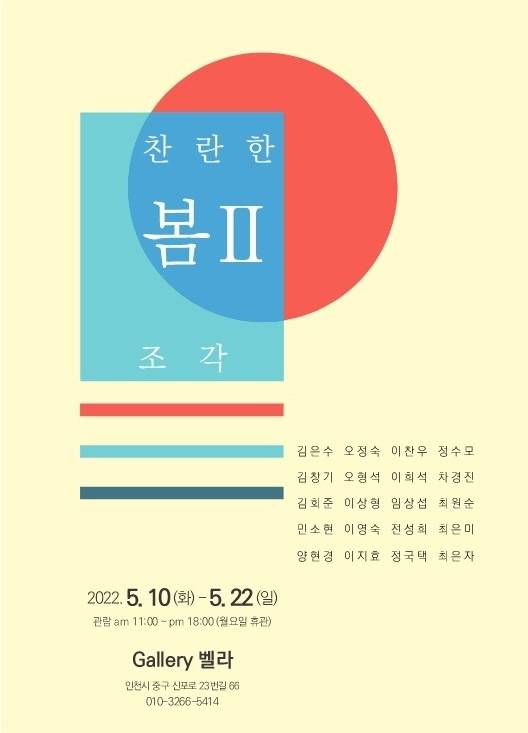 "찬란한 봄 Ⅱ-조각전"은 인천시 중구 개항장 갤러리 '벨라'에서 5월 22일까지 관객들과 만난다. 관람료는 무료다. 월요일은 휴관한다.