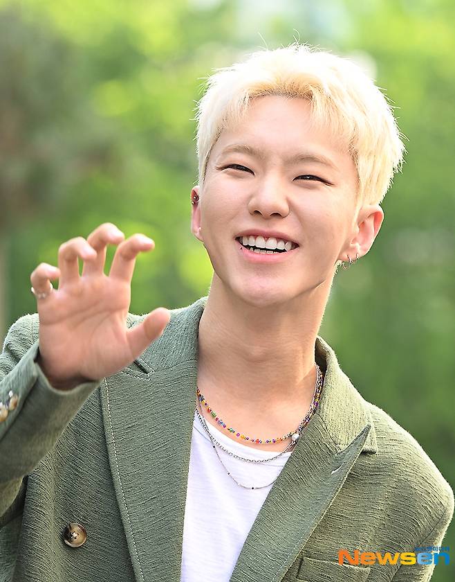 세븐틴 호시가 5월 16일 오후 방송 녹화 일정 차 서울 영등포구 여의도동 KBS 신관으로 들어서고 있다.