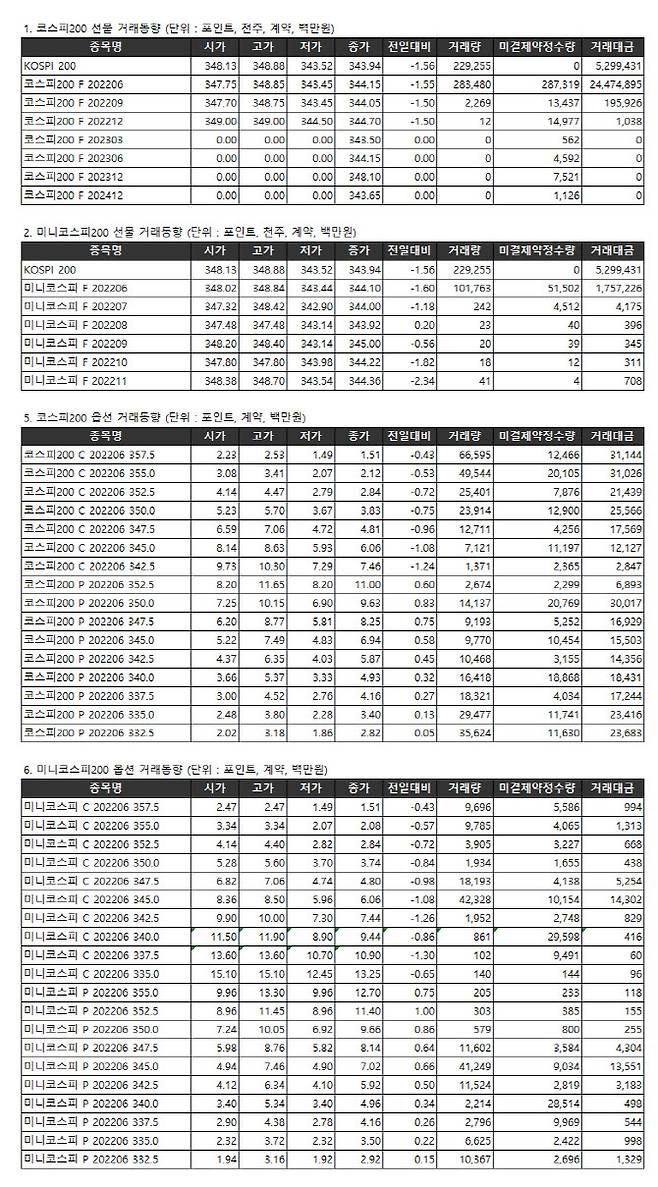 [표]거래소주가지수선물·옵션시세표(5/16)