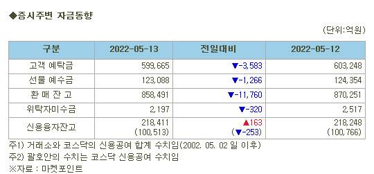 [표]증시주변 자금동향 (5/13)