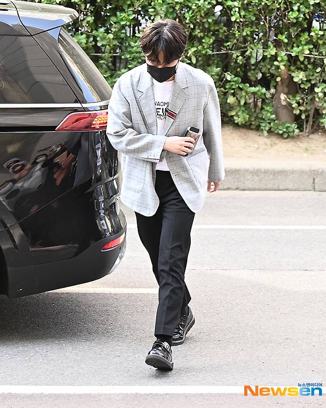 가수 이찬원이 5월 16일 오후 방송 녹화 일정 차 서울 영등포구 여의도동 KBS 신관으로 들어서고 있다.
