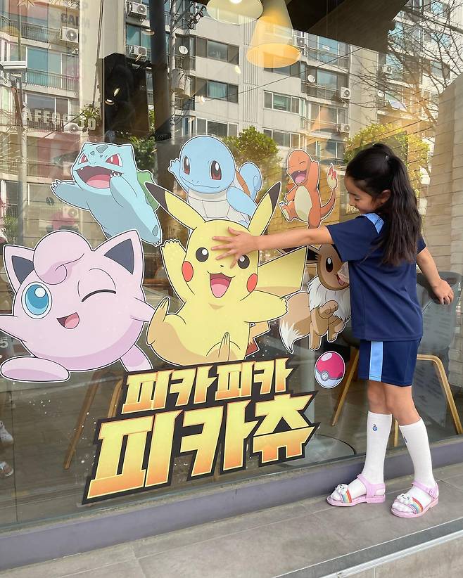 공개된 사진에는 소이현의 첫째 딸 하은 양의 모습이 담겼다. 한 아이스크림 체인점의 유리벽에 붙은 포켓몬들이 반갑다는 듯 양팔을 벌려 꼭 붙어있어 웃음을 준다.