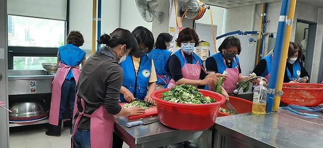 이날 회원 15명이 참여하여 코로나 19 예방수칙을 준수하면서 복지 취약계층 42가구에 전달할 물김치와 달걀장조림을 정성껏 마련했다.