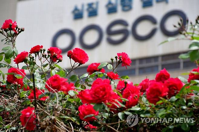 (포항=연합뉴스) 16일 경북 포항의 포스코 포항제철소 3제강공장 주변에 포항시화인 장미가 활짝 피어 있다. 2022.5.16 [포스코 제공. 재판매 및 DB 금지]