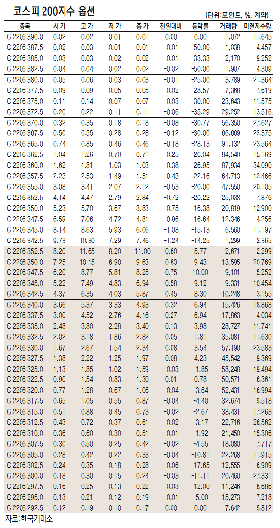 - [표]코스피200지수 옵션 시세(5월 13일)