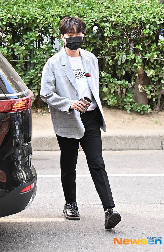 가수 이찬원이 5월 16일 오후 방송 녹화 일정 차 서울 영등포구 여의도동 KBS 신관으로 들어서고 있다.