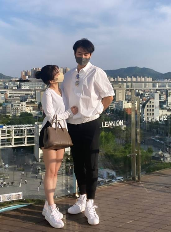 공개된 사진 속 아야네와 이지훈은 화이트 상의와 블랙 하의에 화이트 신발까지 맞춰 커플룩을 완성한 모습이다.