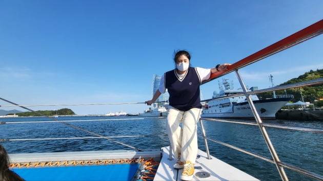 조미녀는 요트 위에서 바다를 즐기고 호텔옥상의 달 형상에 소원을 비는 모습도 공개했다.