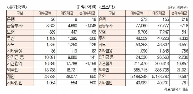 [표]유가증권·코스닥 투자주체별 매매동향(5월 16일-최종치)