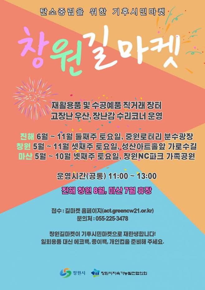 창원시가 주최하고 창원시지속가능발전협의회, 관내 지역프리마켓네트워크(창원, 마산, 진해)가 주관하는 길마켓은 환경의 중요성과 재활용 문화에 대한 인식증진을 위해 시민이 직접 판매자로 참여하는 행사로 창원을 대표하는 프리마켓이다.