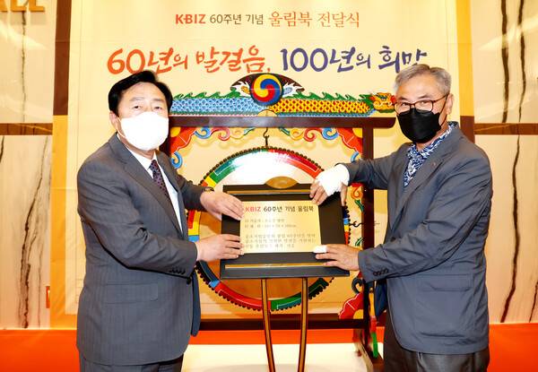 중소기업중앙회(회장 김기문)는 16일 오전 서울 여의도 중앙회 본관에서 창립 60돌을 기념하는 울림북(좌고) 전달식을 열었다. 전통 타악기 명인인 소순주 한국공예협동조합연합회장이 직접 제작한 울림북을 울려 ‘제34회 중소기업주간’(16~20일)의 개막을 알리는 퍼포먼스도 했다.