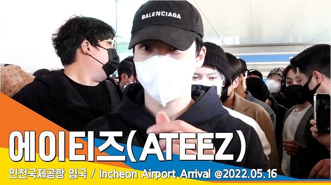 가수 에이티즈(ATEEZ) 멤버 홍중, 성화, 윤호, 여상, 산, 민기, 우영, 종호가 5월 16일 오후 해외 투어 일정을 마치고 인천 중구 운서동 인천국제공항을 통해 입국하고 있다.