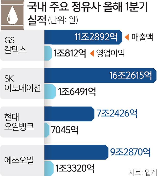 16일 업계에 따르면 GS칼텍스·SK이노베이션·현대오일뱅크·에쓰오일 등 국내 4대 정유업체는 올해 1분기에 역대 최대 실적을 거뒀다.