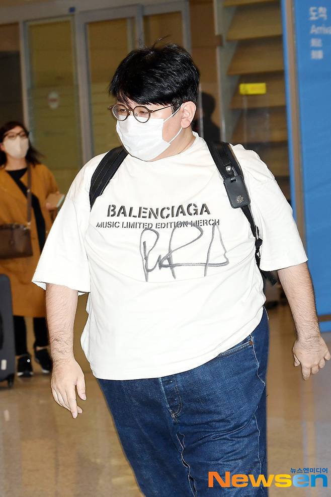 작곡가 겸 하이브 의장 방시혁이 5월 16일 오후 인천 중구 운서동 인천국제공항 제 2여객터미널을 통해 일본에서의 일정을 마치고 입국하고 있다.