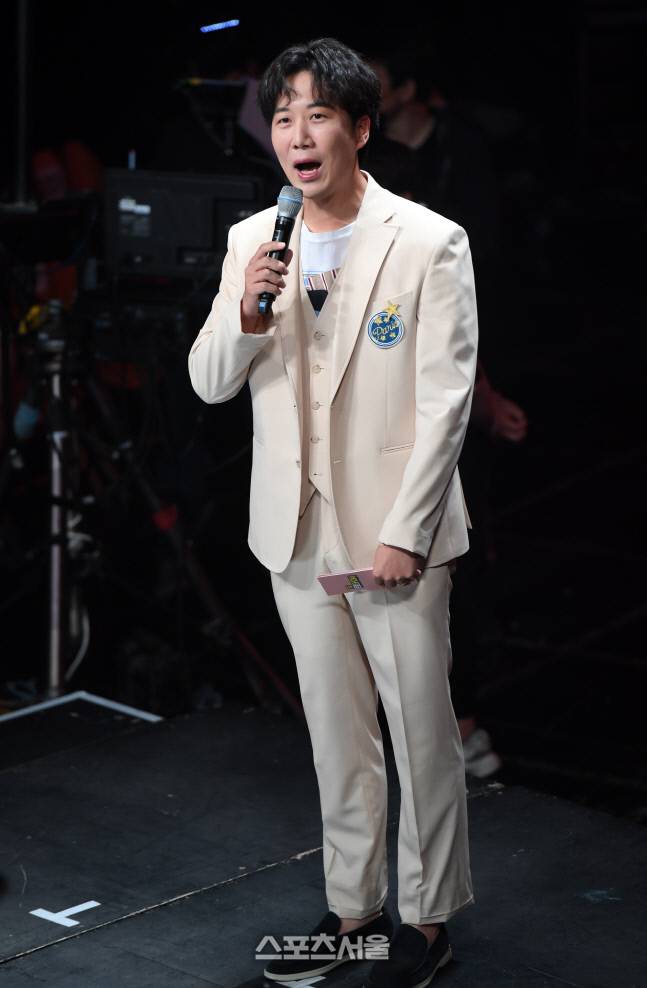 방송인 도경완이 16일 서울 마포구 SBS프리즘타워에서 진행된 SBS FiL, SBS MTV ‘더트롯쇼’ 생방송을 진행하고 있다. 2022. 5. 16.