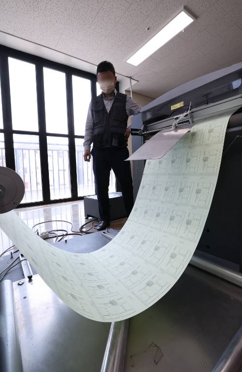 6·1지방선거를 앞둔 16일 경기 수원시의 한 인쇄업체에서 지방선거 투표용지가 인쇄되고 있다. 연합뉴스