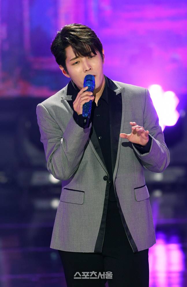 가수 김중연이 16일 서울 마포구 SBS프리즘타워에서 진행된 SBS FiL, SBS MTV ‘더트롯쇼’ 생방송 무대에서 ‘부디 오래오래’를 열창하고 있다. 2022. 5. 16.