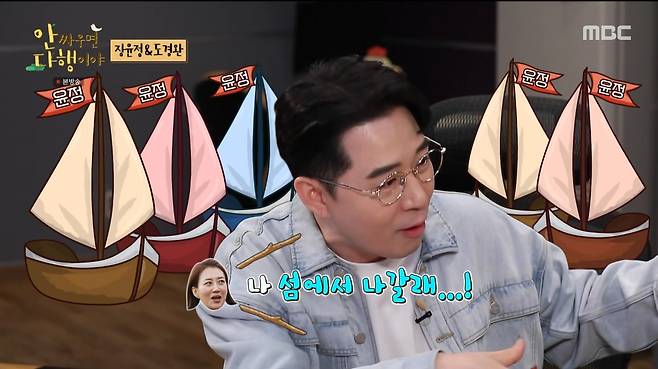 이날 도경완은 장윤정과 떠나는 무인도行에 "오랜 꿈이 이뤄진다. 아내와 무인도에 가는 것이 소원 중 하나였다"고 밝혔다. 소원성취를 위해 직접 '안다행' 측에 연락해 출연 의사를 밝힌 남편을 보며 장윤정은 "왜 나까지 데리고 오냐"고 투덜거렸지만, 도경완은 "말로는 '무슨 무인도냐'고 했지만 장윤정도 나랑 둘이 있는 걸 원했다. 너 없는 삶이 의미가 있니?"라며 자신감을 드러냈다.