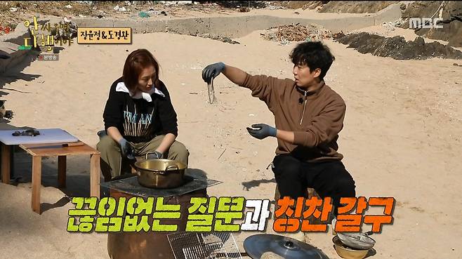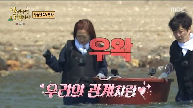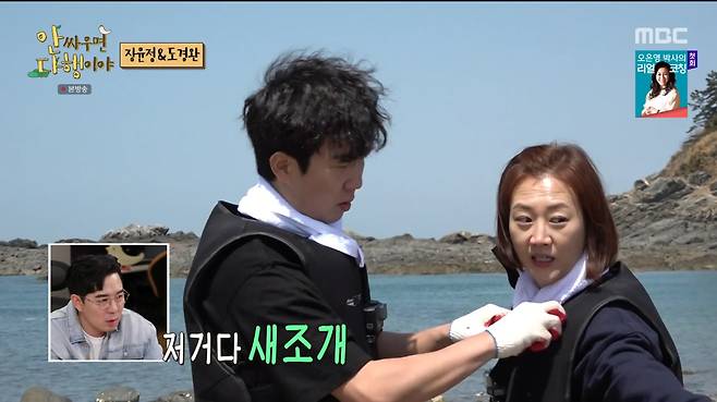 '해산물 킬러' 장윤정이 먼저 새조개를 발견했다. 도경완은 "그냥 쉬어!"라고 또 허세를 부렸지만, 해산물의 생김새도 모르는 초보라 결국 장윤정의 지시와 도움이 필요했다. 장윤정은 소라 속에 있는 쭈꾸미를 발견하고 돌 위에서 트위스트를 추기도 했다. 그 모습에 도경완은 "해외여행 가도 저렇게 안 좋아한다. 아내가 아기처럼 좋아하는 거 처음 봤다"며 함께 기뻐했다.