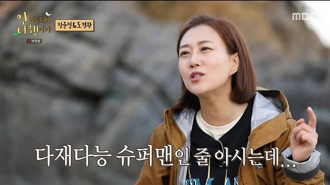 16일 오후 방송된 MBC '안싸우면 다행이야'에서는 장윤정-도경완 부부의 무인도 생존기가 펼쳐졌다. 빽토커로는 개그우먼 홍현희가 함께한다.
