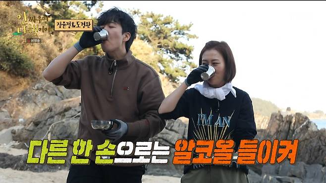 드디어 첫 시식. 자연의 맛을 경험한 장윤정은 "승질나게 맛있다"며 바로 소주 콜을 외쳤다. 장윤정과 도경완은 소문난 애주가 부부. 해산물과 술의 기막힌 조합에 장윤정은 "요 근처 땅 좀 보고 갈래?"라며 재력을 과시해 눈길을 끌었다. 오늘 섬에서 자고 간다는 아내의 말에 도경완은 "배 끊긴 섬에 남자랑 남는 거야?"라며 음흉한 눈빛을 보냈다. 이에 장윤정은 "멘트가 더러워서 못 들어주겠다"고 선을 그어 폭소케 했다.