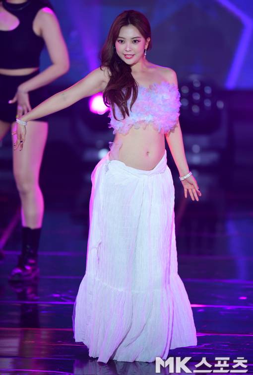 요요미가 파격적인 무대의상으로 ‘위하여’를 열창을 하고 있다.