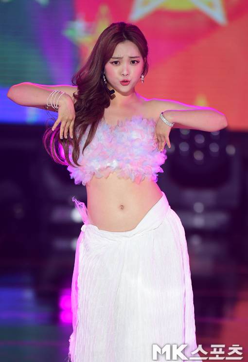 요요미가 파격적인 무대의상으로 ‘위하여’를 열창을 하고 있다.