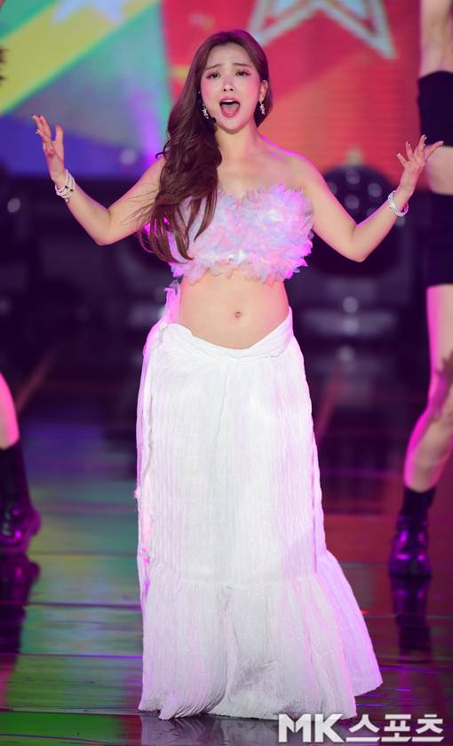 요요미가 파격적인 무대의상으로 ‘위하여’를 열창을 하고 있다.