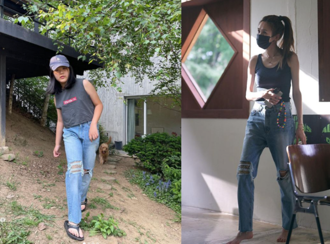 사진 속 지온은 긴 다리를 뽐내고 있다. 전직 '발레리나'로 늘씬한 몸매를 자랑하는 엄마 윤혜진과 똑 닮은 모습은 감탄을 자아낸다.