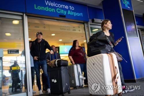 epa09950911 People leave London City Airport in London, Britain, 16 May 2022. Travelers are no longer required to wear face masks on airplanes and at airports as of May 16, according to the European Union Aviation Safety Agency (EASA) and European Center for Disease Prevention and Control (ECDC) rules. EPA/TOLGA AKMEN